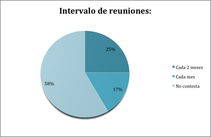 Respecto a cada cuánto nos deberíamos reunir, se recoge que deberíamos tener reunión de pacientes: cada mes (1 persona); cada dos meses (2 personas); el resto no responde a esta pregunta.